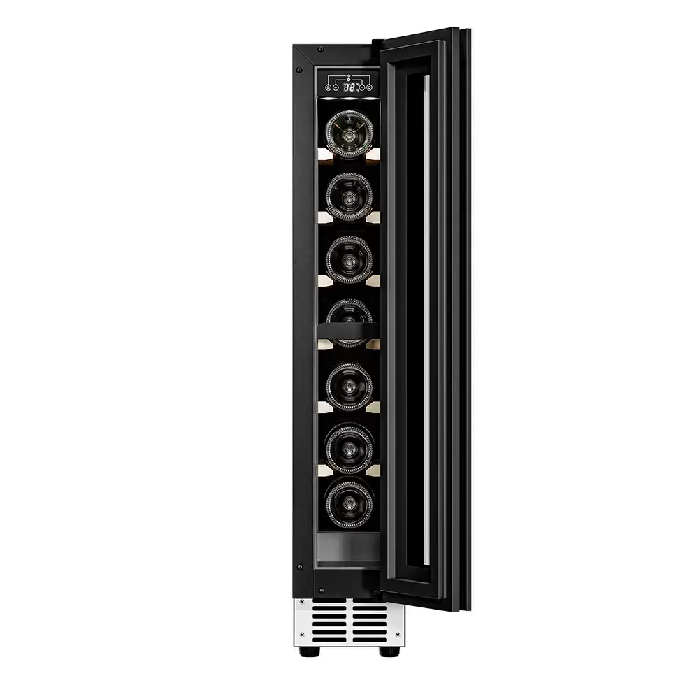 Винный холодильник Meyvel MV9NH-KWT1 имеет одну температурную зону, в которой можно разместить бутылки и единовременно выставить только одну комбинацию настроек. Он встраивается в нишу, что удобно, если у вас ограничен метраж помещения. Благодаря компактным размерам данная модель — отличный выбор для офиса, гостиничного номера. Количество бутылок, которое можно разместить с учетом полной комплектации и из расчета объема бутылки 0,75 л, — 9 шт.
